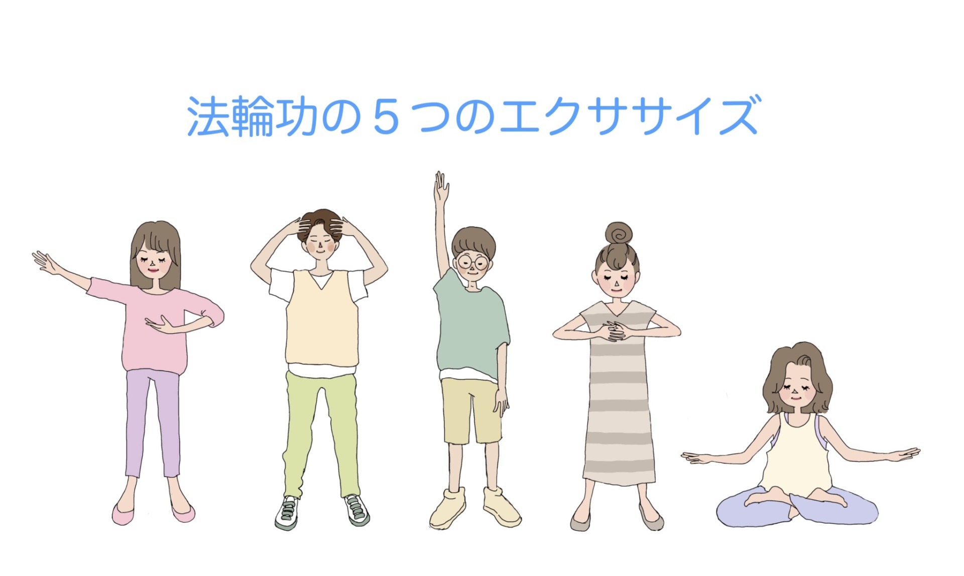 《1》気功のエクササイズとは、5つのエクササイズを練習することです。立って行う4つの動作と、座禅があります。